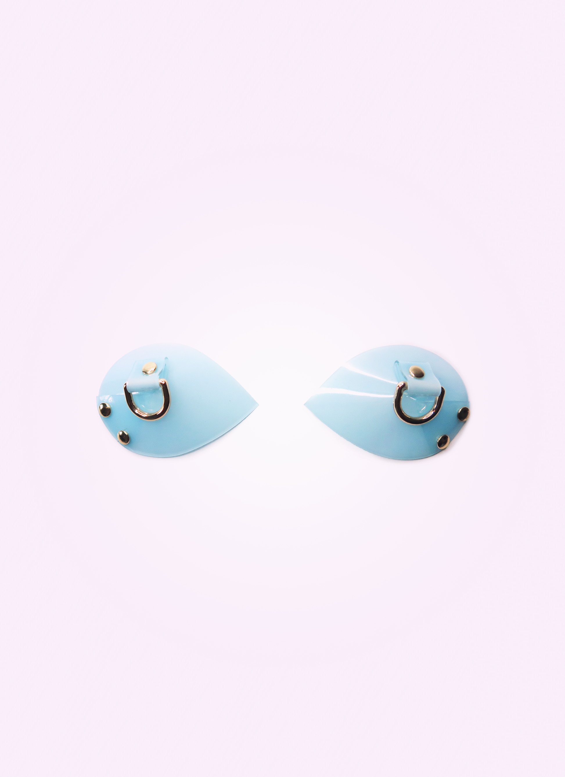This material is made of PVC and TPU. Its inner face is soft and feel confortable on the skin, and its outer surface is shiny. It is flexible and slightly elastic and do not deform with time. The transparency is different depending on the color, as you can see in the